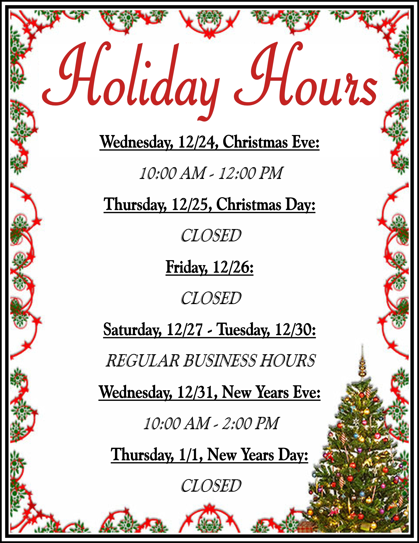 | Sunday | Closed |